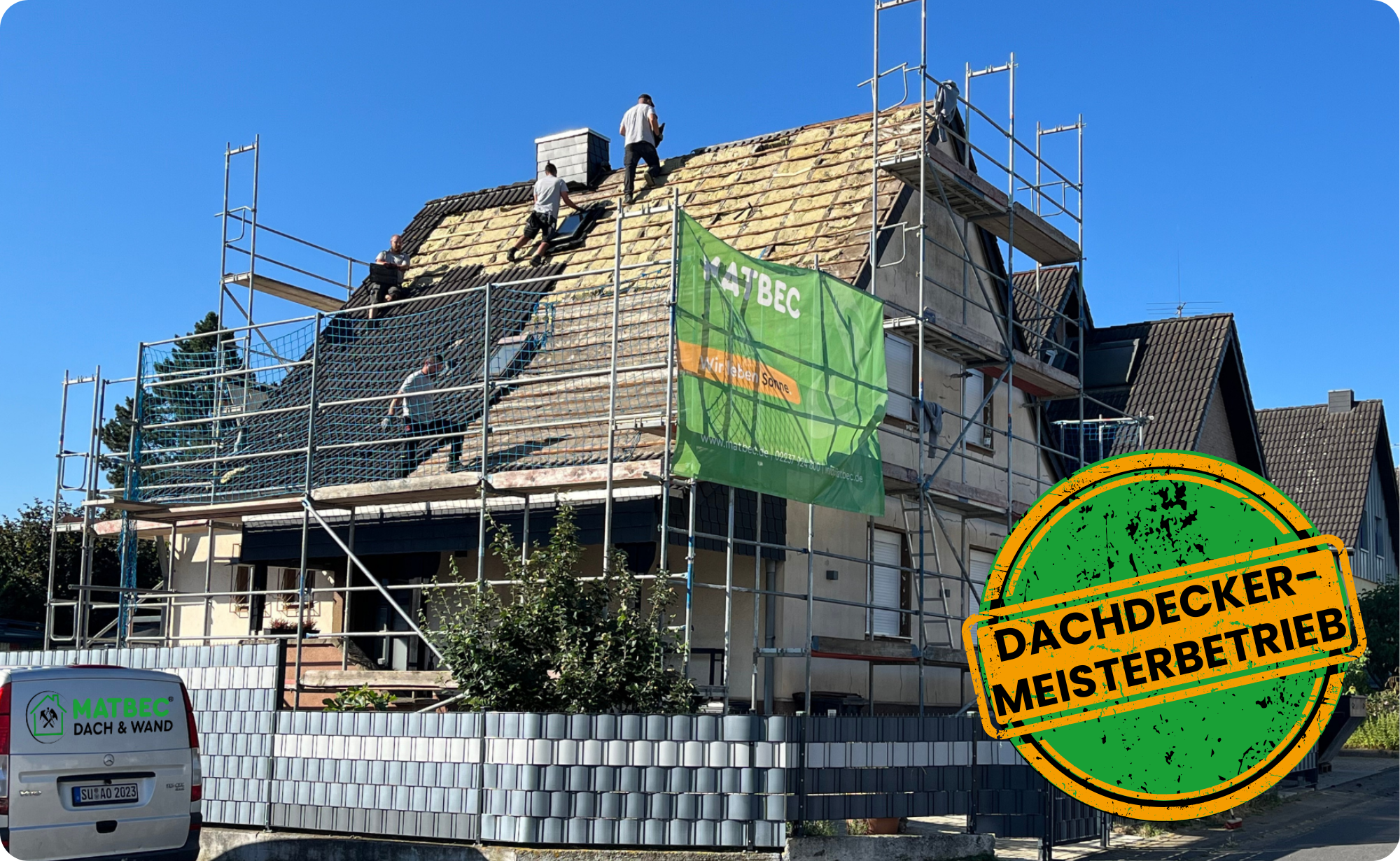 Ein sicheres Dach beginnt mit gutem Handwerk. Seit über 25 Jahren steht Matthias Becker, Inhaber von Matbec, für zuverlässige Arbeit, individuelle Beratung und hochwertige Materialien. Als Dachdeckermeister bringt er Erfahrung und Leidenschaft in jedes Projekt ein, vom privaten Einfamilienhaus bis zur Industriehalle.